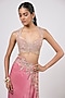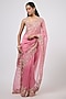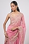 Featuring a pink saree in organza base with zardosi and sequins embroidery. It is paired with an embroidered blouse. Accentuate the designer saree with kundan polki or meenakari jewellery, embellished heels and a potli bag for an elegant look, Perfect wear for your wedding, festive or engagement ceremony.