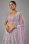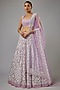 Featuring a purple lehenga in net base with kashmiri thread, aari and sequins embroidery. It is paired with a blouse and a dupatta. Accentuate with statement jewellery and heels for a wedding or engagement ceremony.