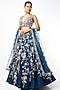 Featuring a teal blue lehenga in dupion silk base with cutwork detailing. It is paired with a matching organza blouse and a net dupatta.