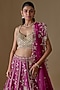 Featuring a wine lehenga in dupion silk base with zardosi embroidery. It is paired with a blouse and a dupatta. Accentuate it with statement jewellery and heels for a wedding, sangeet for engagement ceremony.