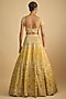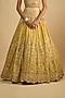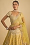 Featuring a yellow handcrafted lehenga in dupion base with pita zardosi embroidery. It is paired with a blouse and a dupatta. Style it with minimal polki jewellery and block heels, perfect for a wedding or haldi ceremony.