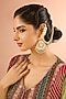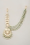 Featuring a pair of 18 kt gold plated chandbali earrings studded with jadau kundan polki, natural gemstones and semi-precious stones, set in copper. Perfect choice for a wedding, engagement ceremony or festive occasion.