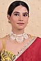 Featuring a 18kt gold plated necklace studded with jadau kundan polki, set in copper. It is paired with a matching pair of earrings. This jewellery elevates weddings, parties and festive looks, style it with embellished outfits and heels for a refined, glamorous finish.