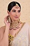 Featuring a 18kt gold plated necklace studded with jadau kundan polki, set in copper. It is paired with a matching pair of earrings and a maangtikka. This jewellery elevates weddings, parties and festive looks, style it with embellished outfits and heels for a refined, glamorous finish.