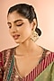 Featuring a pair of 18 kt gold plated dangler earrings studded with jadau mother of pearls, natural gemstones and semi-precious stones, set in copper. Perfect choice for a wedding, engagement ceremony or festive occasion.
