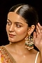 Featuring a pair of 18kt gold plated chandbaali earrings studded with kundan polki, semi-precious stones and natural gemstones, set in copper. Perfect for festive or wedding ceremonies.
