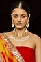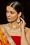 Featuring a 18kt gold plated choker necklace studded with kundan polki, semi-precious stones and natural gemstones, set in copper. It is paired with a matching pair of earrings. Perfect for festive or wedding ceremonies.