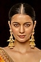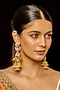 Featuring a pair of 18kt gold plated dangler earrings studded with kundan polki, semi-precious stones and natural gemstones, set in copper. Perfect for festive or wedding ceremonies.