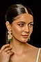 Featuring a pair of 18kt gold plated dangler earrings studded with kundan polki, semi-precious stones and natural gemstones, set in copper. Perfect for festive or wedding ceremonies.