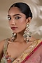 Featuring a pair of 18kt gold plated jadau chandbali earrings studded with kundan polki, semi-precious stones and gemstones, set in copper. Perfect for any evening soirees, weddings or festive occasions.