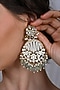 Featuring a pair of 18kt gold plated chandbali earrings studded with mother of pearls, set in copper. This jewellery elevates weddings, parties and festive looks, style it with embellished outfits and heels for a refined, glamorous finish.