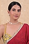 Featuring a 18kt gold plated choker necklace studded with mother of pearls, set in copper. It is paired with a matching pair of earrings. This jewellery elevates weddings, parties and festive looks, style it with embellished outfits and heels for a refined, glamorous finish.