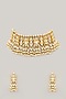 Featuring a 18 kt gold plated choker necklace studded with mother of pearl, natural gemstones and semi-precious stones, set in copper. It is paired with a matching pair of earrings. Perfect choice for a wedding, engagement ceremony or festive occasion.
