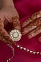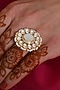 Featuring a 18kt gold plated ring studded with mother of pearls, set in copper. This jewellery elevates weddings, parties and festive looks, style it with embellished outfits and heels for a refined, glamorous finish.