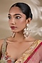 Featuring a pair of 18kt gold plated chandbali earrings studded with mother of pearls, semi-precious stones and gemstones, set in copper. Perfect for any evening soirees, weddings or festive occasions.