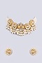 Featuring a 18kt gold plated choker necklace studded with mother of pearls, semi-precious stone and gemstones, set in copper. It is paired with a matching pair of earrings. Perfect for any evening soirees, weddings or festive occasions.