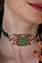 Featuring a 18kt gold plated choker necklace studded with multi-colored jadau kundan polki, set in copper. It is paired with a matching pair of earrings. This jewellery elevates weddings, parties and festive looks, style it with embellished outfits and heels for a refined, glamorous finish.