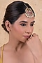 Featuring a 18kt gold plated maangtikka studded with multi-colored jadau kundan polki, set in copper. This jewellery elevates weddings, parties and festive looks, style it with embellished outfits and heels for a refined, glamorous finish.