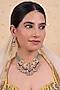Featuring a 18kt gold plated choker necklace studded with multi-colored jadau kundan polki, set in copper. It is paired with a matching pair of earrings. This jewellery elevates weddings, parties and festive looks, style it with embellished outfits and heels for a refined, glamorous finish.