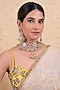 Featuring a 18kt gold plated necklace studded with multi-colored jadau kundan polki, set in copper. It is paired with a matching pair of earrings. This jewellery elevates weddings, parties and festive looks, style it with embellished outfits and heels for a refined, glamorous finish.