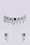 Featuring a white finish necklace studded with zircons, green semi-precious stones and gemstones, set in copper. It is paired with a matching pair of earrings. Perfect for any evening soirees, weddings or festive occasions.