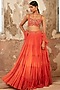 Featuring an orange tiered lehenga in georgette, net, and crepe base. It is paired with a matching blouse having hand embroidery and a ruffle embellished dupatta.