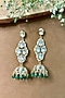 Gold Finish Kundan Polki & Green Beaded Jhumka Earrings