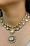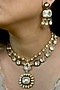 Featuring a gold finish handcrafted necklace studded with kundan polki, set in brass. It is paired with a matching pair of earrings. Perfect wear for weddings or festive celebrations.