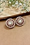 Featuring a pair of gold finish handcrafted stud earrings studded with pink stones and kundan polki, set in brass. It has a push back closure. Perfect wear for weddings or festive celebrations.