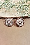 Featuring a pair of gold finish handcrafted stud earrings studded with pink stones and kundan polki, set in brass. It has a push back closure. Perfect wear for weddings or festive celebrations.