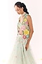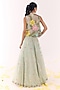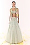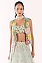Featuring a blue jacket in organza base with embroidery. It is paired with an embellished blouse and a lehenga. Accentuate it with pearl and swarovski jewellery, embellished heels and a clutch for an engagement, sangeet or wedding ceremony.