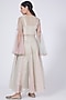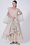 Featuring a blush pink asymmetric angarakha kurta in kota silk and cotton satin base with floral applique embroidery. It is paired with a matching anarkali and a dupatta.