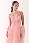 Featuring a blush pink ruched anarkali in chiffon and net base with hand embroidery. It is paired with an organza dupatta. Accentuate it with statement earrings and heels for festive occasions or weddings.