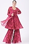 Featuring a french rose and maroon kurta in georgette base with print. It is paired with matching sharara pants and a dupatta.