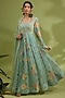 Featuring a green anarkali in chiffon base with floral print, cutdana, dori, resham, zari and sequins hand embroidery. It is paired with an organza dupatta. Accentuate with statement jewellery and heels for your wedding, sangeet, engagement or reception ceremony.