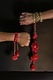 Featuring a maroon floral lumba rakhi with silver hand and machine embroidery.