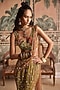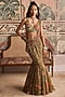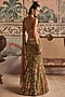 Featuring an olive green pre-draped lehenga saree in chiffon base with floral print and hand embellishments. It is paired with a plunging neck blouse having floral embroidery. Accentuate it with statement jewellery and heels for festive occasions or wedding ceremonies.