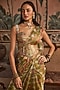 Olive Green Glass Organza & Dupion Silk Floral Printed Saree Set