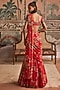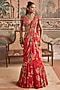 Saffron Red Chiffon Floral Printed Pre-Draped Mermaid Saree Set
