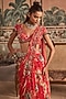 Featuring a saffron red pre-draped mermaid saree in chiffon base with floral print. It is paired with a net hand embroidered blouse. Accentuate it with statement jewellery and heels for festive occasions or wedding ceremonies.