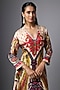 Featuring a beige kurta in vegan gajji silk base with paisley print and hand embroidery. It is paired with palazzo pants. Accentuate it with dangler earrings and heels for a festive occasion, family gathering or intimate pooja ceremony.