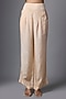 Featuring a beige kurta in vegan slub silk base with paisley print and hand embroidery. It is paired with palazzo pants. Accentuate it with dangler earrings and heels for a festive occasion, family gathering or intimate pooja ceremony.