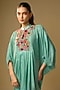 Featuring a blue pleated dress in gajji silk base with resham embroidery. Accentuate it with statement stud earrings and flats for a casual yet stylish look, perfect for any casual date, brunch outings or weekend getaways.