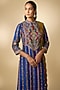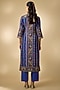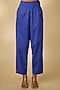 Featuring a blue kurta in linen silk base with resham embroidery. It is paired with cotton stretch pants and a printed crushed dupatta. Style it with kundan polki earrings and block heels for festive gatherings or pooja ceremony.