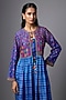 Featuring a blue jacket in slub and satin base with print and resham embroidery. It is paired with a pintuck inner and palazzo pants. Accentuate it with statement jewellery and flats for a festive occasion, family gathering or pooja ceremony.