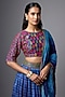 Featuring a blue lehenga in slub silk base with print. It is paired with a resham embroidered blouse and a dupatta. Accentuate it with statement jewellery and heels for a mehendi, wedding, engagement or sangeet ceremony.