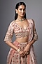 Featuring a blush pink lehenga in slub silk base with thread and resham hand embroidery. It is paired with an embroidered blouse and a kashmiri embroidered dupatta. Accentuate it with statement jewellery and heels for a wedding, engagement or sangeet ceremony.