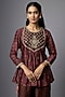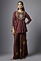 Featuring a brown peplum top in slub silk base with bandhani print and hand embroidery. It is paired with palazzo pants. Accentuate it with dangler earrings and heels for a festive occasion, family gathering or intimate pooja ceremony.