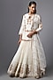 Featuring an ivory crushed lehenga in slub silk base with resham embroidery. It is paired with an embroidered long blouse and an organza embroidered dupatta. Accentuate it with kundan polki earrings and heels for a reception, wedding, sangeet or engagement ceremony.