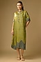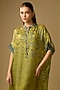 Featuring a mustard dress in gajji silk base with smocked sleeves, pockets and floral print. Accentuate it with statement stud earrings and heels for a casual yet stylish look, perfect for brunch outings or weekend getaways.